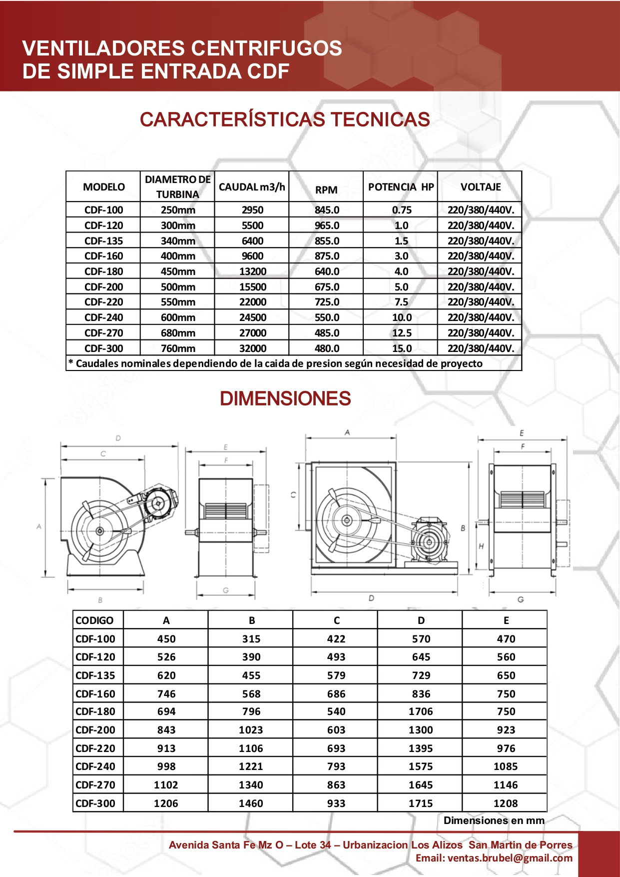 Ventiladores centrífugos doble entrada CDF